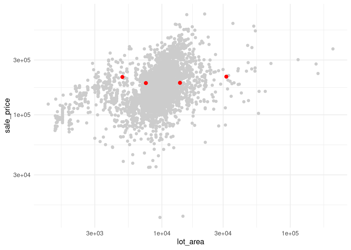 select(lot_area, sale_price, neighborhood)